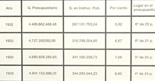 La evolución del gasto presupuestario durante cuatro años de gobiernos republicanos y la inversión en instrucción pública durante ese periodo: