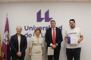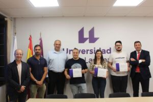 Foto de familia de los premiados junto a los directores de la cátedra, vicerrector de Agenda Digital y Modernización (2i) y vicegerente de Planificación Estratégica (3i).