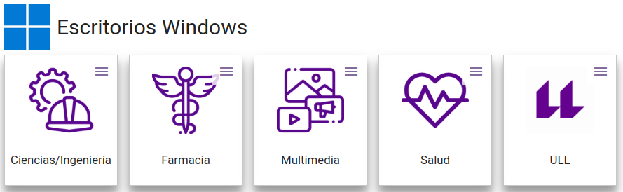 El servicio ofrece la posibilidad de acceder a cuatro escritorios virtuales con el sistema operativo Windows 11. Cada uno de estos escritorios virtuales ha sido configurado para contener el software necesario para la docencia.