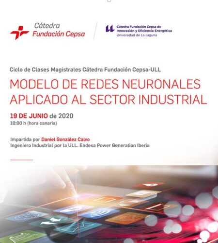 La primera Clase Magistral de esta cátedra fue impartida telemáticamente, bajo el título ‘Modelo de redes neuronales aplicado al sector industrial’, por el investigador de la Universidad de La Laguna Daniel González, quien explicó los conceptos básicos del aprendizaje de las máquinas y del desarrollo de las redes neuronales artificiales, destacando la relevancia de disponer de modelos predictivos validados, asociados a una problemática industrial real.