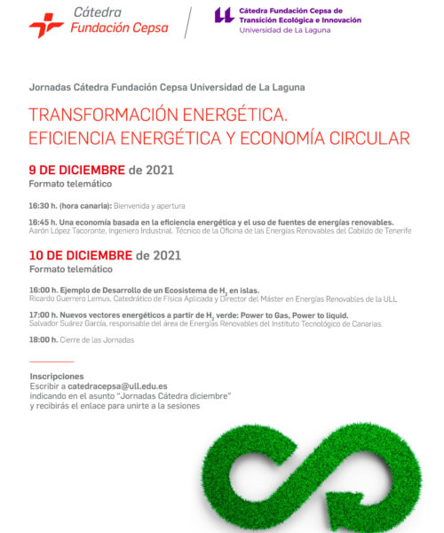 El Ciclo de Jornadas “Cátedra Fundación Cepsa-ULL” aborda en esta ocasión la preocupación general existente por modernizar nuestra economía y sociedad para que sean climáticamente neutras, sostenibles, circulares, respetuosas con el medio natural y eficientes en el uso de recursos. El cambio del modelo energético puede ser un elemento principal para conseguir un modelo económico más sostenible y resiliente. Las diferentes ponencias abordan cómo puede ser una economía basada en la eficiencia energética y la incorporación de energías renovables al mix energético. Se analiza, además, el uso del Hidrógeno como fuente de energía en un entorno aislado como son las islas y, por otra parte, como vector energético para generar otros productos como diésel, syngas etc. Todos estos cambios contribuirán a la descarbonización de los sectores económicos.
