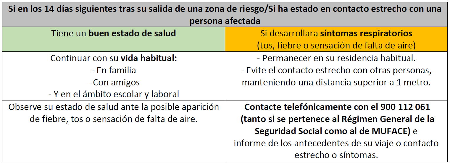 Si durante su estancia en zonas afectadas presenta síntomas compatibles con una infección respiratoria aguda, como fiebre, tos o sensación de falta de aire, deberá contactar con las autoridades sanitarias locales y seguir sus recomendaciones.