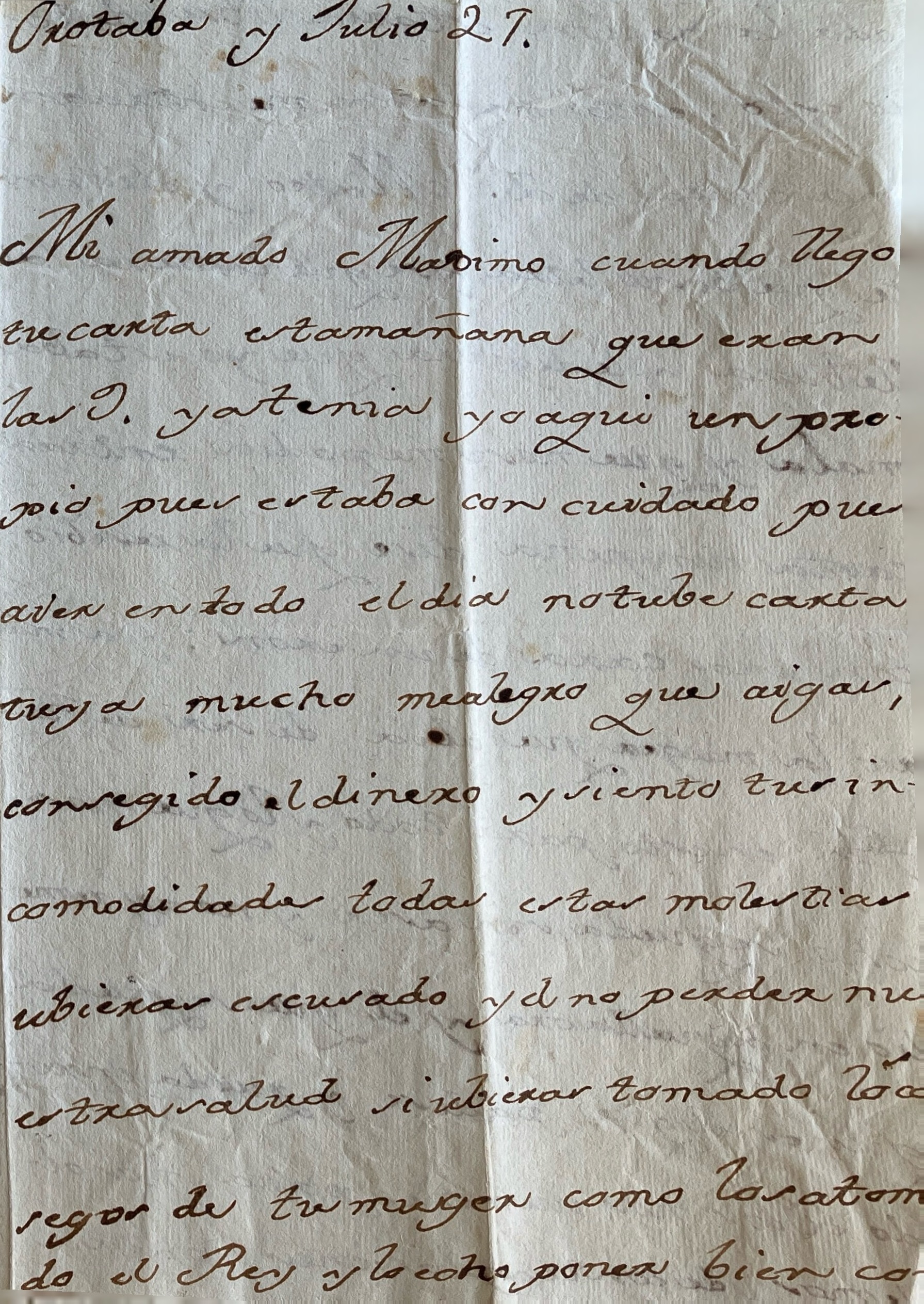 Carta de Rosalía Franchi a su marido en la que le informa de su estado y de lo ocurrido en los últimos días