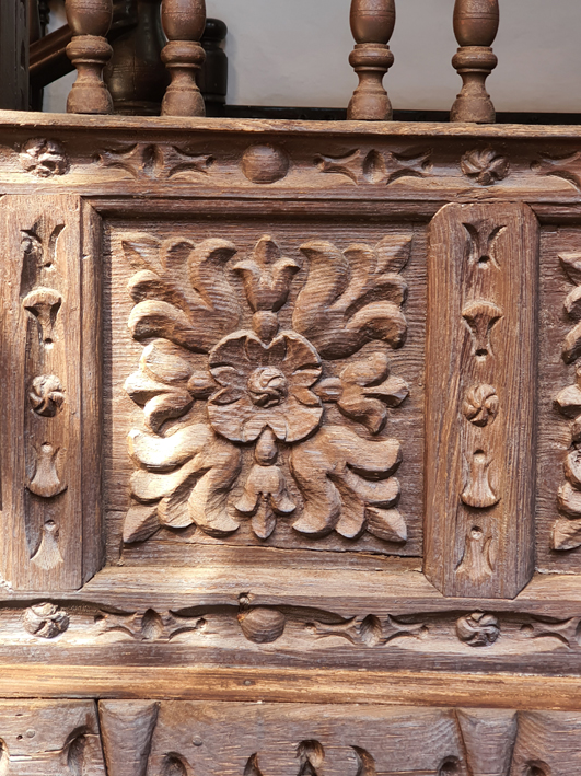 L'un des aspects les plus marquants de la menuiserie patrimoniale des îles Canaries réside dans sa profusion de quantité, de détails, de motifs et de compositions ornementales, tant au niveau des cadres que des éléments de menuiserie d'atelier. Portes, fenêtres, galeries de patio, baies vitrées, balcons, fenêtres à meneaux, fermes de toit, plafonds à caissons, escaliers, etc., témoignent du savoir-faire, de la prouesse technique et du savoir-faire compositionnel d'artisans qui maîtrisent et appliquent des techniques de menuiserie anciennes, telles que celles des styles wisigothique et mudéjar, en les combinant de manière à répondre aux besoins de l'habitat et aux conditions climatiques.