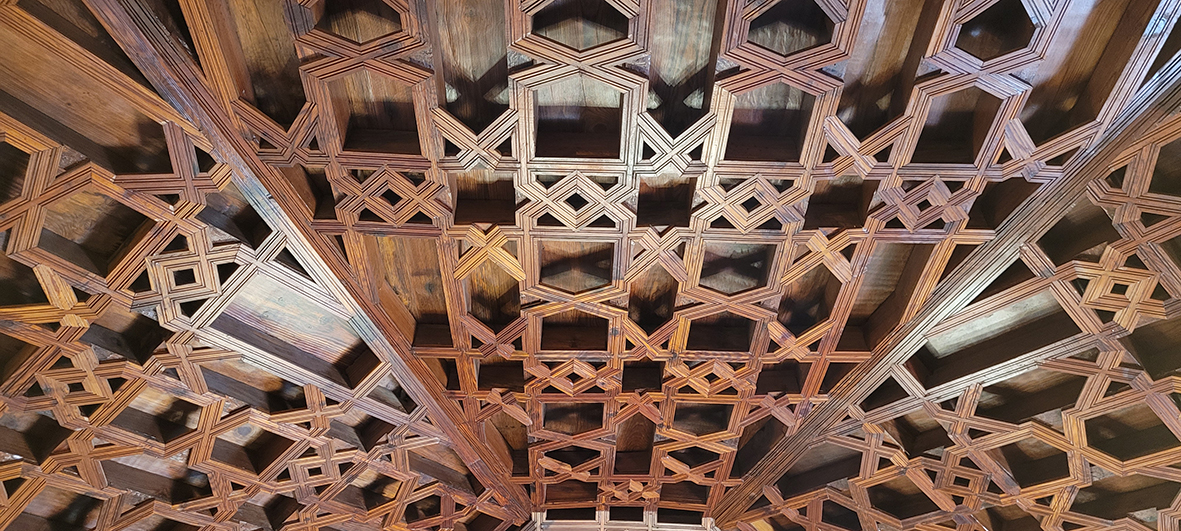 Dans notre pays, l'UNESCO a reconnu l'importance de l'architecture mudéjar médiévale espagnole, en déclarant l'architecture aragonaise au patrimoine mondial. L'un des éléments clés de cette architecture reconnue par l'UNESCO est ses plafonds à caissons. Ces éléments allient des aspects structurels et ornementaux, créant des œuvres d'une beauté extraordinaire. Ces structures sont issues de la fusion des techniques de menuiserie wisigothiques et des arts décoratifs islamiques dans le contexte de la péninsule Ibérique, donnant naissance à des styles uniques comme l'art mudéjar. Ces éléments se sont répandus dans de nombreuses autres régions de la péninsule, comme la Castille-et-León, l'Andalousie, entre autres, jusqu'aux îles Canaries et au reste des territoires colonisés par la Couronne de Castille.