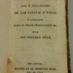 Doyle, Enrique. Tratado sobre el cultivo uso y utilidades de las patatas ó papas é instruccion para su mejor propagacion &c … Madrid: En la Imprenta Real, 1797 ACOR AC.23 Hemos incorporado a nuestro Fondo Antiguo un nuevo libro de gran interés para el estudio de la historia del cultivo de la papa. Su autor, Enrique Doyle,…