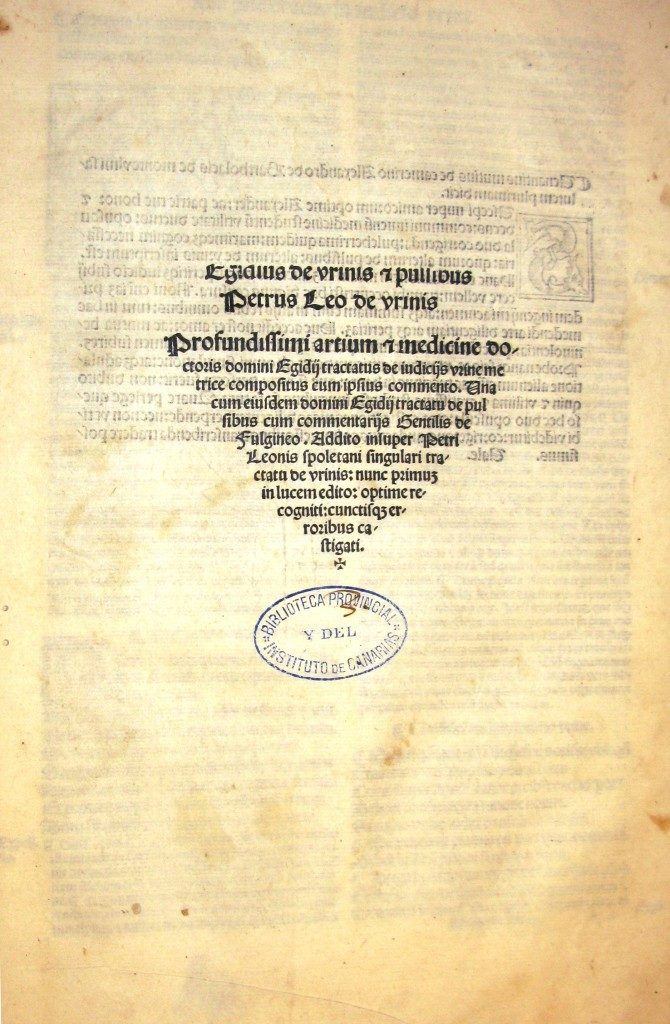 Guilles de Corbeil. Egidius de urinis [et] pulsibus. Petrus Leo de urinis. Profundissimi artium [et] medicine doctoris domini Egidij tractatus de iudicijs urine metrice compositus cum ipsius commento. Una cum eiusdem domini Egidij tractatu de pulsibus cum commentarijs Gentilis de Fulgineo. Additio in super Petri Leonis Spoletani singulari tractatu de urinis : nunc primu[m] in lucem…