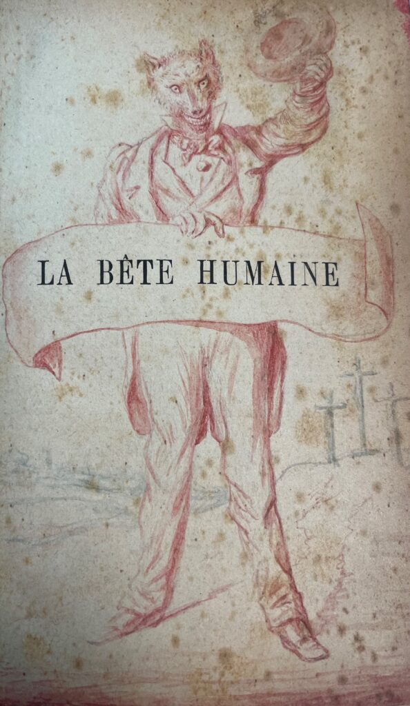 Zola, Emile. La bête humaine. Paris : G. Charpentier et Cie., Éditeurs, 1890. S.XIX 3359 En 1890 Emile Zola publica la primera edición de su novela La Bête Humaine. El ejemplar de esta fecha, que conserva la Biblioteca, contiene un delicado dibujo y un ex libris manuscrito. La ilustración, realizada a lápiz de color sepia…