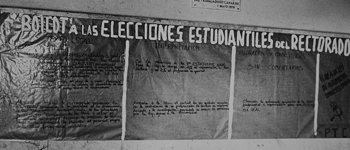 Ante esta situación, la Biblioteca Universitaria y el Departamento de Geografía e Historia de la Universidad de La Laguna han decidido promover la creación de un «Archivo Histórico de la Transición Democrática en Canarias» con un doble fin. En primer lugar, el de tratar de preservar la documentación de todo tipo producida durante el franquismo, la transición y la consolidación de la democracia.