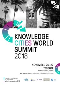 The 11th Knowledge Cities World Summit (KCWS-2018) will be held in Tenerife, Canary Islands, Spain.