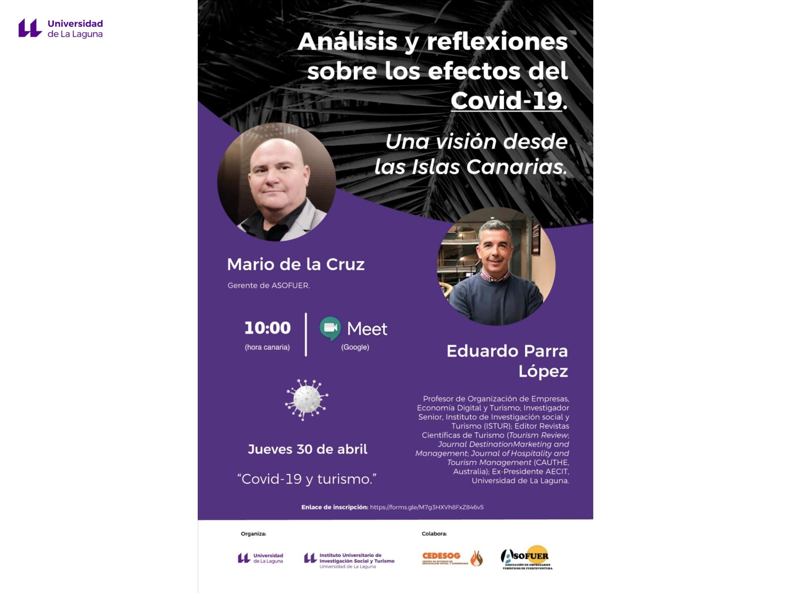 Ciclo de Seminarios Análisis y reflexiones sobre los efectos del COVID-19 Una visión desde las Islas Canarias. Dirige: Dr. Eduardo Parra López. Organiza: ISTUR, Facultad de Economía, Empresa y Turismo, y CEDESOG de la Universidad de La Laguna.
