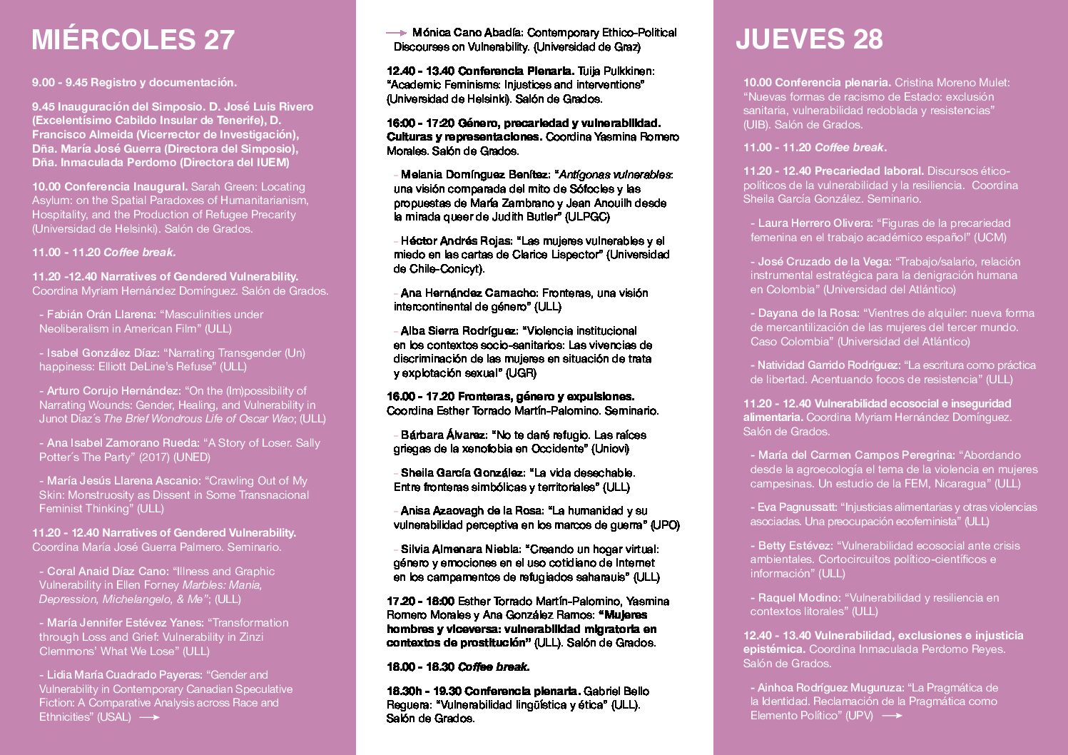 El Instituto Universitario de Estudios de las Mujeres (IUEM) de la Universidad de La Laguna le invita al III Simposio Internacional “Exclusiones, violencias y vidas precarias. Contra la producción masiva de vulnerabilidad” a celebrar en San Cristóbal de La Laguna, Tenerife (Islas Canarias, España) los días 27 y 28 de febrero de 2019.