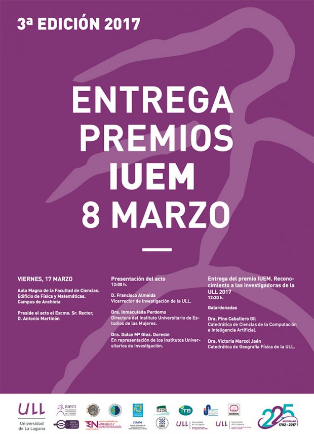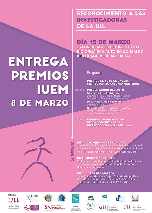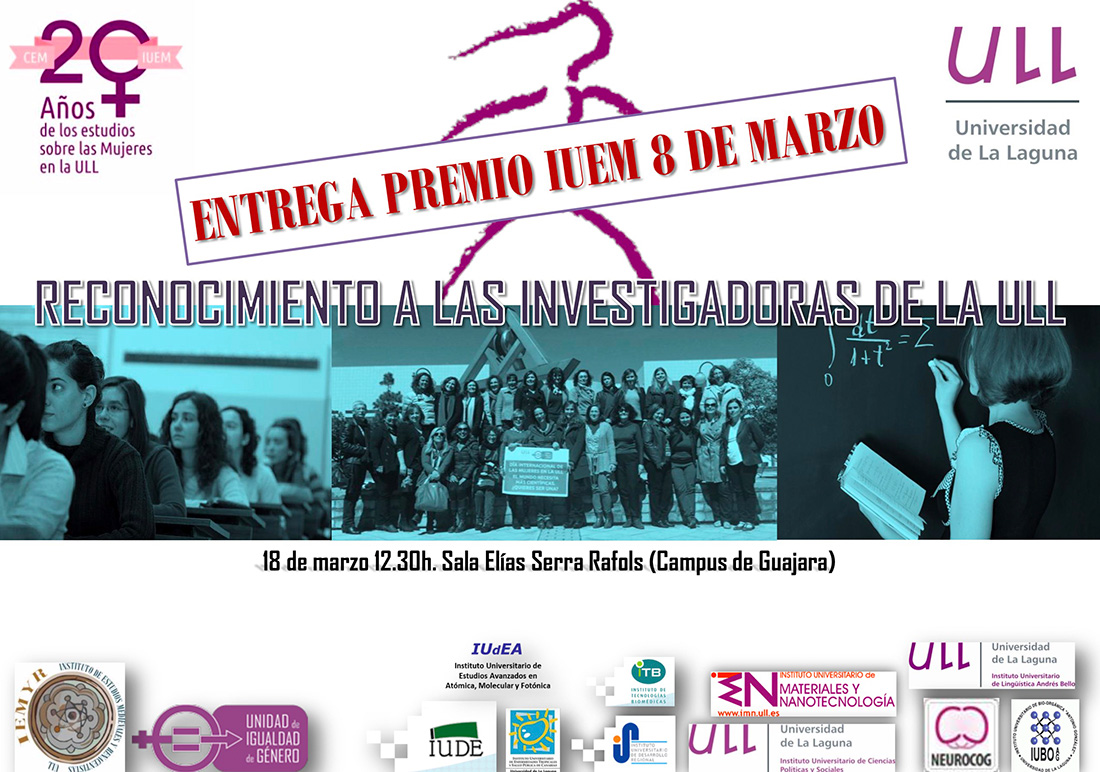 El premio IUEM 8 de marzo de Reconocimiento a las investigadoras de la ULL tiene como propósito reconocer y visibilizar las carreras y logros en investigación de destacadas investigadoras de nuestra universidad en todos los ámbitos y ramas del conocimiento.