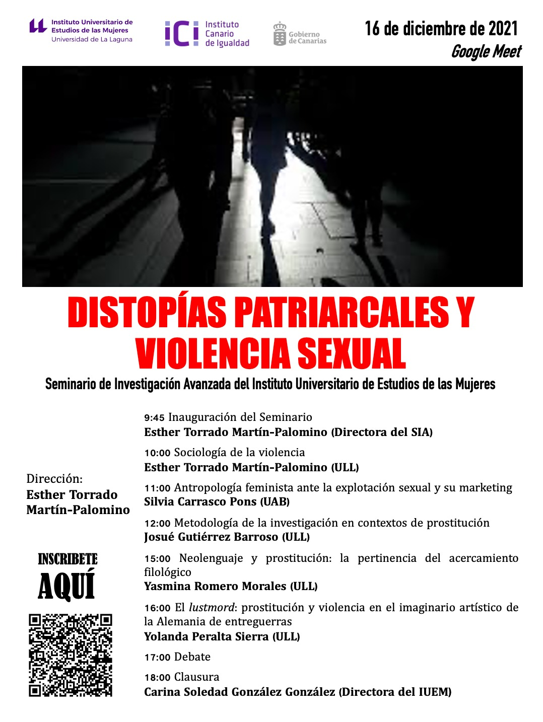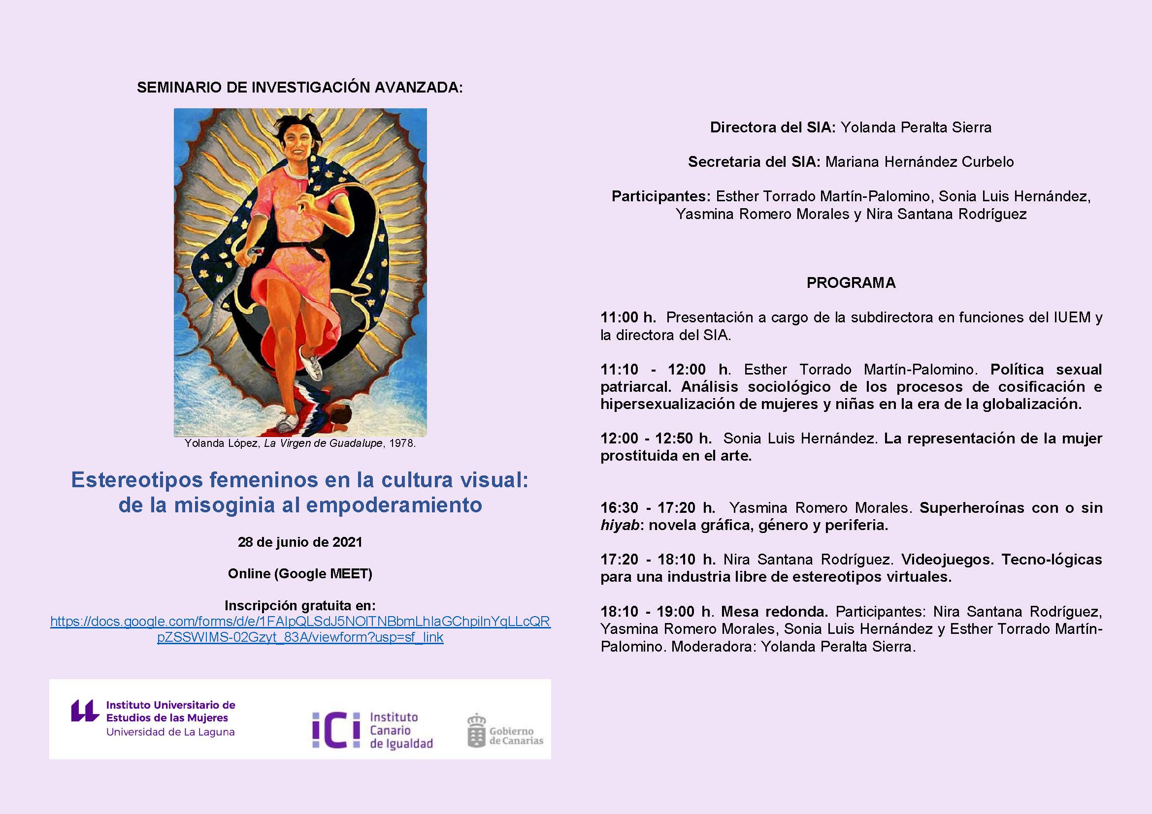 El Instituto Universitario de Estudios de las Mujeres (IUEM) de la Universidad de La Laguna, en colaboración con el Grupo de Investigación Literatura y género en lengua inglesa han organizado el Seminario de Investigación Avanzada (Octubre-Diciembre 2011) que contará con la presencia de Dª Nikita Dhawan, Dª Francine Deutsch y Dª Alicia Puleo.