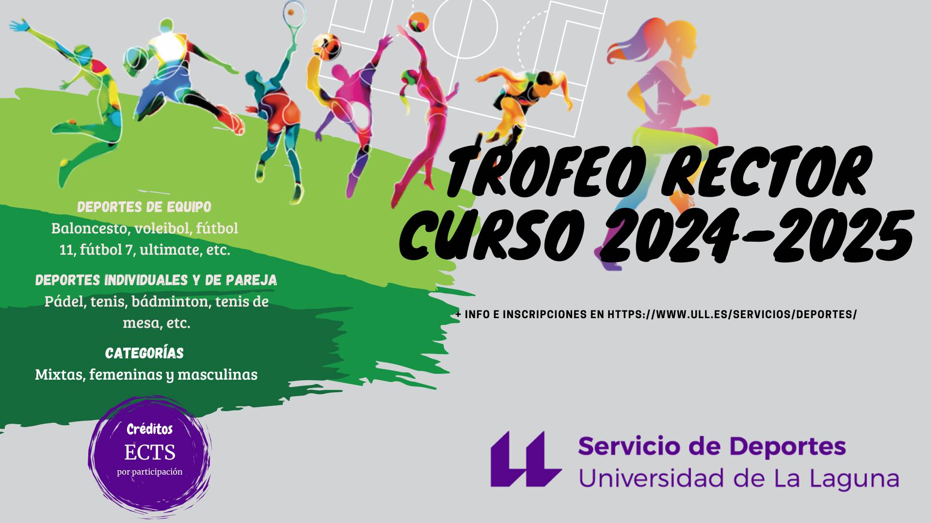 El Servicio de Deportes les informa que desde hoy, día 18 de septiembre, se encuentran abiertas las inscripciones para las competiciones del Trofeo Rector en deportes individuales, parejas y de equipo. Los deportes convocados en categoría masculina, femenina y mixta son: