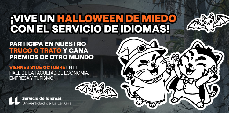 El Servicio de Idiomas de la Universidad de La Laguna celebra este viernes una divertida actividad de Halloween en la Facultad de Economía, Empresa y Turismo (Campus de Guajara), de 10:00 a 13:00 horas.