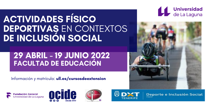 Curso de Extensión Universitaria organizado por la Fundación General de la Universidad de La Laguna (FGULL), OCIDE y el Grupo de Innovación e Investigación Docente en la Actividad Física y el Deporte (GIIDAFD) de la ULL, con la colaboración del Cabildo Insular de Tenerife, que se celebrará en la Facultad de Educación entre los días 29 de abril y 19 de junio de 2022.