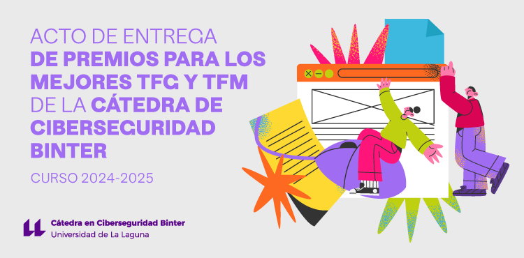 La Cátedra de Ciberseguridad Binter de la ULL anuncia la celebración del acto de entrega de los premios para los mejores TFG y TFM del curso 2024-2025 el próximo jueves 6 de noviembre a las 17:00 horas en el Salón de Grados de la Escuela Superior de Ingeniería y Tecnología.