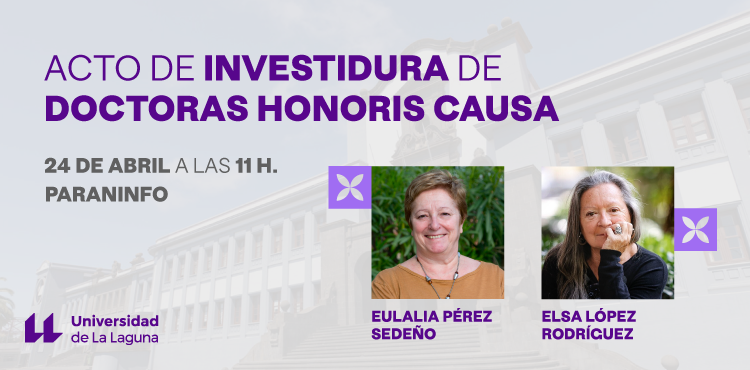 La Universidad de La Laguna reconoce la valía e importancia en sus respectivos campos de conocimiento de la filósofa Eulalia Pérez Sedeño y de la escritora Elsa López Rodríguez, concediéndoles el doctorado Honoris Causa en un acto solemne presidido por el Rector, que se celebrará en el Paraninfo ante toda la comunidad universitaria el 24 de abril a partir de las 11:00 horas.