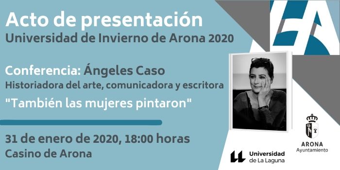 Este año contaremos con la presentadora y escritora Ángeles Caso, en el acto de apertura de la cuarta edición de la «Universidad de Invierno de Arona», quien impartirá la conferencia inaugural bajo el título «También las mujeres pintaron», que tendrá lugar el próximo 31 de enero, en el salón de actos del Casino de Arona, a las seis de la tarde.