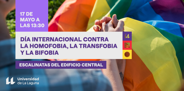 Con motivo del Día Internacional contra la Homofobia, Transfobia y Bifobia, el Vicerrectorado de Estudiantes de la Universidad de La Laguna ha organizado un acto en la escalinata del Edificio Central, el viernes 17 de mayo a las 13:30, en el que se leerá un manifiesto cuyo objetivo principal es denunciar la discriminación que sufren las personas homosexuales, bisexuales y transexuales, además de seguir luchando para avanzar en sus derechos en todo el mundo.