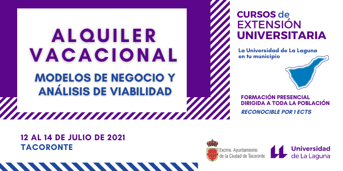 Curso de Extensión Universitaria organizado por el Vicerrectorado de Cultura, Participación Social y Campus Ofra y La Palma en colaboración con el Excmo. Ayuntamiento de la Ciudad de Tacoronte, dentro de la programación de la convocatoria de Cursos de Extensión Universitaria en el ámbito municipal “Ayuntamientos 2021”, que se celebrará en modalidad presencial los días 12 al 14 de julio de 2021.