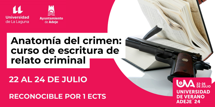 El curso «Anatomía del crimen: curso de escritura de relato criminal» forma parte de la programación de los Cursos de Extensión Universitaria de la “Universidad de Verano de Adeje 2024”, que se celebrará en el municipio de Adeje los días 22 al 24 de julio de 2024.