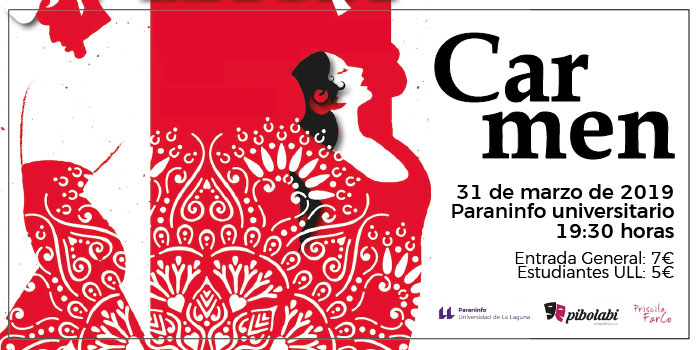 La compañía Pibolabi teatro propone la adaptación libre de la obra literaria Carmen de Prosper Mérimée. Esta representación teatral no sólo se centra en los personajes que Mérimée escogió, sino también en la puesta de escena de la ópera del mismo nombre de Bizet, además de algunos elementos del largometraje de Vicente Aranda, protagonizada por Paz Vega.