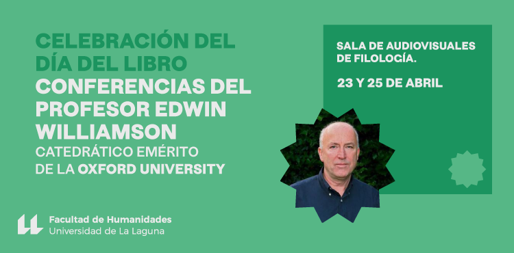 Para conmemorar el Día del Libro, la Sección de Filología de la Facultad de Humanidades de la Universidad de La Laguna cuenta con la presencia de Edwin Williamson, hispanista muy reconocido de la Universidad de Oxford. Impartirá una conferencia el día 23 de abril (Día del Libro) sobre el Quijote y otra el 25 de abril, sobre los estudios hispánicos en Inglaterra, ambas en la Sala de Audiovisuales de Filología.