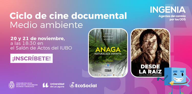 El programa Ingenia, junto a Ecosocial, organizan un ciclo de cine medioambiental el próximo jueves 20 y viernes 21 de noviembre, a las 18:30 horas en el Salón de actos del IUBO de la Universidad de La Laguna. Las proyecciones contarán con la participación de los directores de ambos documentales. Las personas interesadas pueden inscribirse de forma gratuita en este enlace.