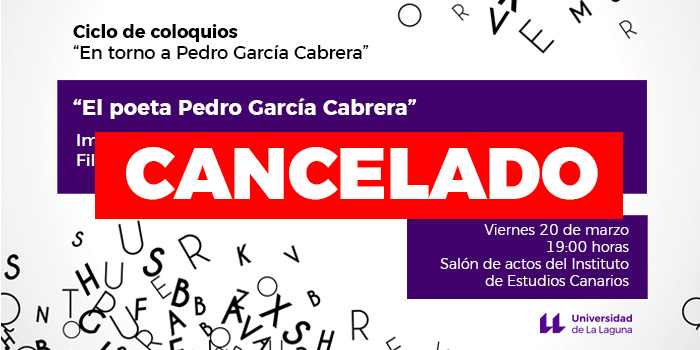 El segundo ciclo «El poeta Pedro García Cabrera», de las conferencias sobre Pedro García Cabrera está dirigido a interpretar sobre la faceta poética del escritor gomero, y será impartido por la escritoria Cecilia Dominguez, Licenciada en Filología Hispánica por la Universidad de La Laguna, poeta y ganadora del Premio Canarias de Literatura (2015). La presentación se desarrollará a la misma hora que la anterior y en el mismo lugar, a las 19:00h en el salón de actos del Instituto de Estudios Canarios.