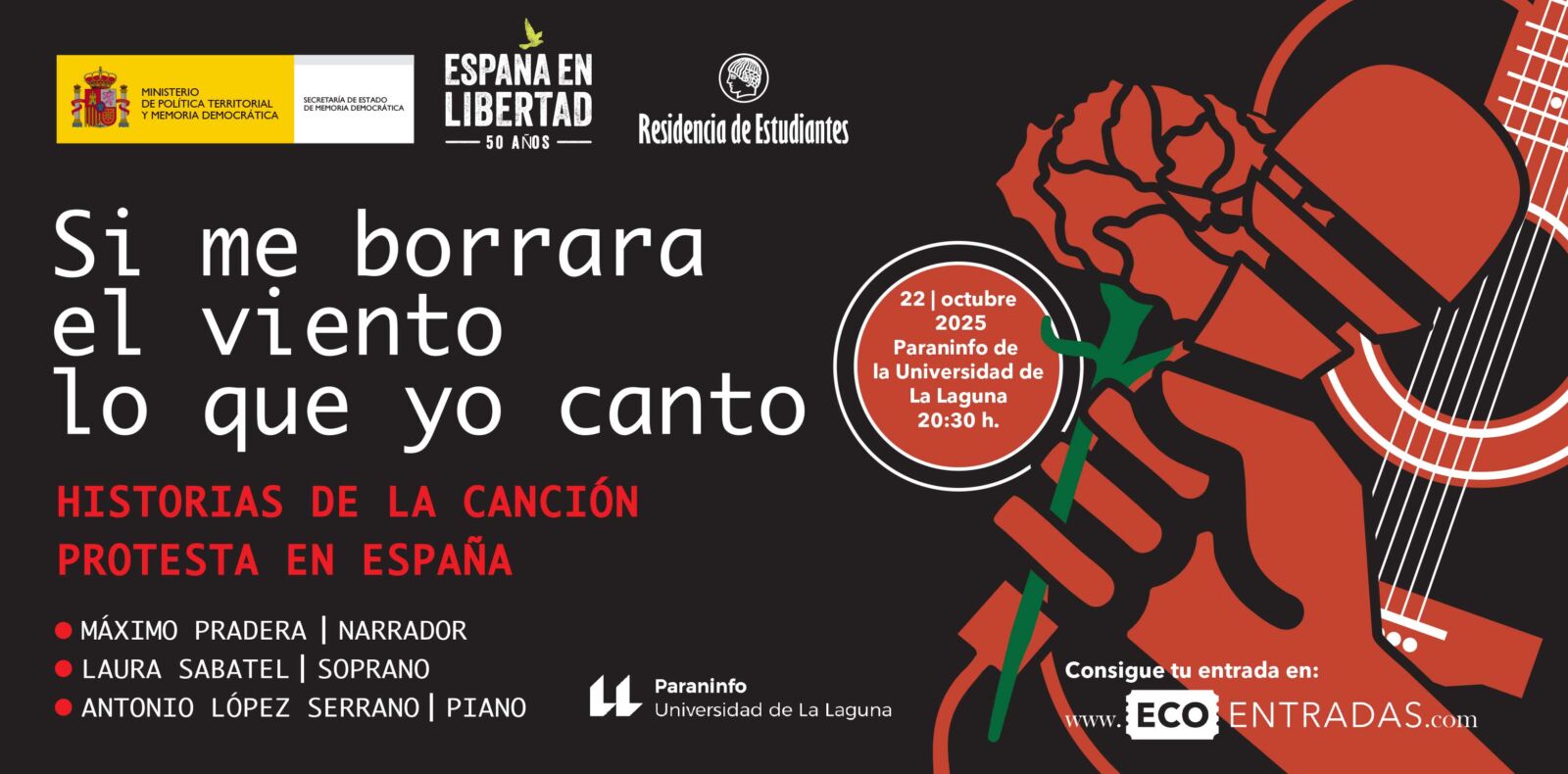 Entre los actos previstos, destaca el concierto “Si me borrara el viento lo que yo canto”. Historia de la canción protesta en España , que tendrá lugar el miércoles 22 de octubre a las 20:30 horas en el Paraninfo Universitario. En España hay una larga tradición de canción protesta, que se remonta al Himno de Riego y al Trágala del siglo XIX, aunque es durante la dictadura franquista y primeros años de la Transición cuando florece este género, que nos ha legado joyas musicales imperecederas, como Gallo Rojo, Gallo Negro, Al Alba o Mi querida España. «Si me borrara el viento lo que yo canto» es un espectáculo que rinde homenaje a algunas de las canciones españolas más memorables del género canción protesta, comentadas por Máximo Pradera e interpretadas por Laura Sabatel (soprano), Antonio López Serrano (piano) y el propio conferenciante, sobrino de Chicho Sánchez Ferlosio, uno de los autores más recordados de los años 60 y 70.