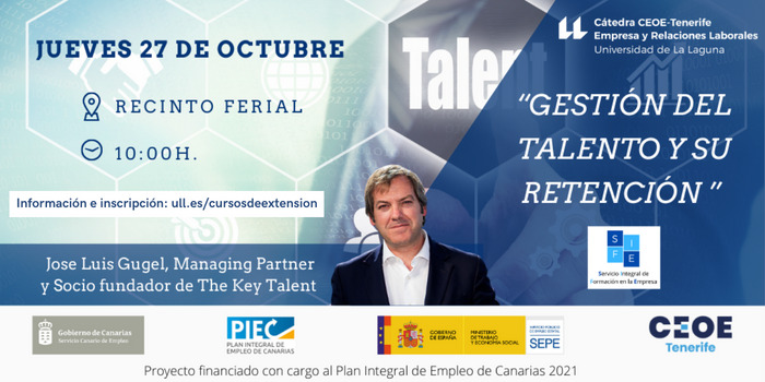 Conferencia de Extensión Universitaria organizada por la Cátedra CEOE-Tenerife Empresa y Relaciones laborales, enmarcada dentro de su Ciclo de conferencias “Personas, Organizaciones y Transformación Digital”, e integrada en el evento del Consejo Social de la ULL y Cabildo de Tenerife Empleoland, que se celebrará tanto en modalidad presencial en la sala anexa del Recinto Ferial en Santa Cruz de Tenerife el 27 de octubre de 2022 a las 10:00 horas, como en modalidad online.
