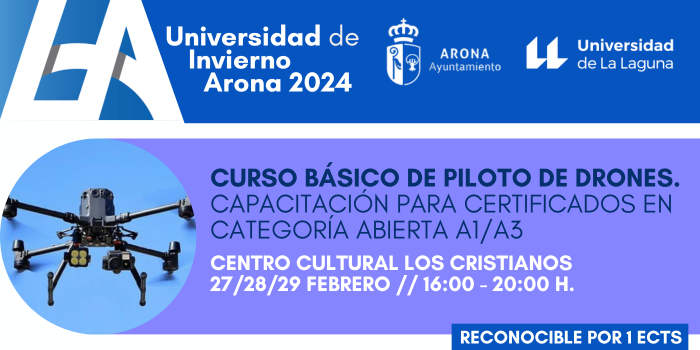 El municipio de Arona acoge este curso que forma parte de la oferta de Cursos de Extensión Universitaria «Universidad de Invierno de Arona 2024», que se celebrará los días 27, 28 y 29 de febrero de 2024 en horario de 16:00 – 20:00 horas en el Centro Cultural Los Cristianos.