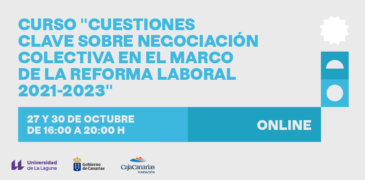 En este marco, el curso ‘Cuestiones clave sobre negociación colectiva en el marco de la Reforma Laboral 2021-2023’ organizado por la Universidad de La Laguna, el Gobierno de Canarias y la Fundación CajaCanarias y que tendrá lugar de forma online los días 27 y 30 de octubre tiene como objetivo abordar algunas cuestiones clave y otras urgentes que se plantean en la regulación convencional actual, deteniéndose en aspectos de representación y legitimación para negociar, estructura de la negociación, y nuevos posibles contenidos del convenio colectivo.