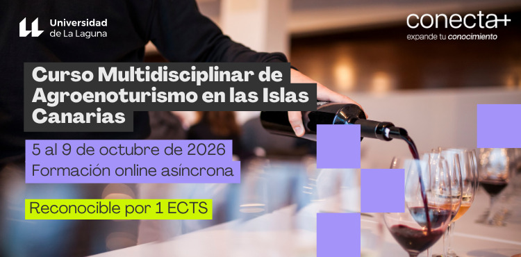 El «Curso Multidisciplinar de Agroenoturismo en las Islas Canarias» forma parte de la programación de los Cursos de Extensión Universitaria 2026 «Conecta+ Expande tu Conocimiento». El mismo se celebrará en modalidad online asíncrona entre el 5 y 9 de octubre.