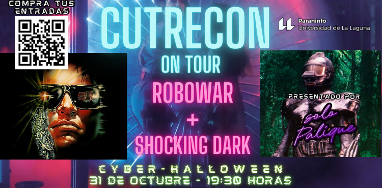 Tras del arrollador éxito del festival CutreCon en Madrid durante catorce años, abrarotando las salas de cine más importantes de la capital con maratones cinematográficas de las peores y más divertidas películas jamás filmadas, la experiencia más hilarante con el cine más zetoso vuelve a Tenerife en una sesión especial Halloween. Un programa doble donde se proyectarán Robowar (1988), popularmente conocida entre los fans como “La copia italiana de Depredador’, y Shocking Dark (1989) un desvergonzado exploitation del cine de James Cameron que funde en una sola cinta fragmentos literalmente copiados de ALIENS (1986) y de Terminator (1984). No en vano, Shocking Dark se estrenó directa a vídeo en nuestro país como ‘Terminator 2’, adelantándose por dos años al estreno de la secuela oficial de la saga protagonizada por Arnold Schwarzenegger.