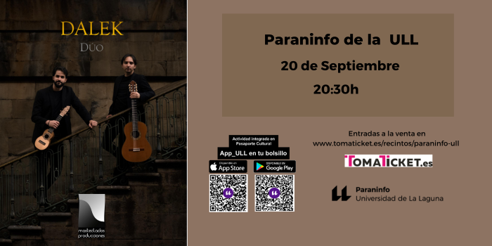 Dado el paralelismo existente en el origen y evolución de ambos instrumentos, desde DALEK DÚO hemos elaborado una propuesta que, partiendo de dichas semejanzas evolutivas, contribuye a ampliar las fronteras de la formación. Así, músicas que van desde Bach hasta Piazzolla, pasando por el Padre Soler o Enrique Granados, suenan a través de las 11 cuerdas del timple y la guitarra, en un recorrido por el academicismo musical nutrido de adaptaciones originales que exploran límites desconocidos hasta ahora en el pequeño instrumento canario.