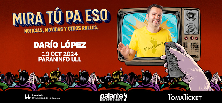 Darío López está de vuelta con su séptimo espectáculo monólogo, llevando risas y energía al Paraninfo de la Universidad de La Laguna. En este espectáculo, Darío explora las noticias de la vida real con un humor ingenioso, ofreciendo una visión hilarante y perspicaz de la actualidad. Invita al público a disfrutar de un buen rato mientras reflexionan sobre la locura de la vida moderna. Con su estilo propio Darío trae de vuelta la mezcla de la parodia, los chistes y los juegos de palabras. Si te gusta lo disfrutarás, si no te gusta siempre podrás lanzar en voz bien alta un «¡Mira tú pa eso!»