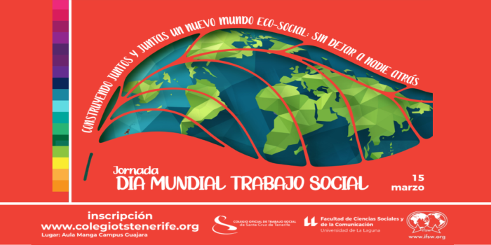 El lema mundial establecido para 2022 por la Federación Internacional de Trabajo Social es: Construyendo juntos y juntas un nuevo mundo eco-social: sin dejar a nadie atrás. Con este motivo el Colegio Oficial de Trabajo Social de Santa Cruz de y el Departamento de Ciencias de la Comunicación y Trabajo Social de la Facultad de Ciencias Sociales y de la Comunicación de La Universidad de La Laguna, han organizado la Jornada Día Mundial del Trabajo Social, que tendrán lugar el próximo 15 de marzo en horario de 8:30 a 14:15 horas, de forma presencial en el Aula Magna del Campus de Guajara.