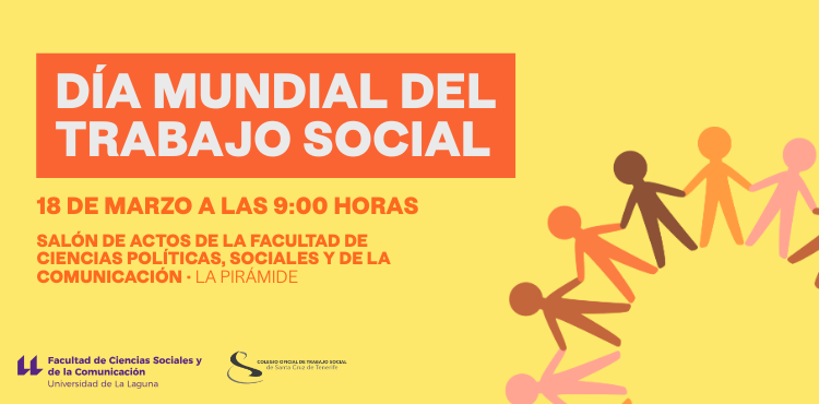 Con motivo de la celebración del Día Mundial del Trabajo Social, el Colegio Oficial de Trabajo Social de Santa Cruz de Tenerife y la Facultad de Ciencias Sociales y de la Comunicación de la Universidad de La Laguna organizan una nueva edición de este encuentro académico y profesional, que tendrá lugar el 18 de marzo en el Salón de Actos La Pirámide.