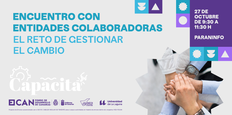El Paraninfo de la Universidad de La Laguna acoge el viernes 27 de octubre de 9:30 a 11:30 h el ‘Encuentro con entidades colaboradoras: El reto de gestionar el cambio’.