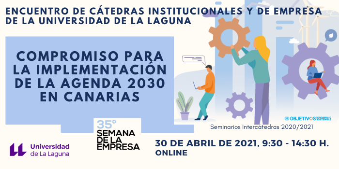 Por tal motivo, el Vicerrectorado de Cultura, Participación Social y Campus de Ofra y La Palma organiza, en el marco de la XXXV edición de la Semana de la Empresa de la Facultad de Economía, Empresa y Turismo, el “Encuentro de Cátedras Institucionales y de Empresa de la Universidad de La Laguna”, que se celebrará el viernes 30 de abril, en horario de 9,30 a 14,30 bajo el título “Compromiso para la implementación de la Agenda 2030 en Canarias”.