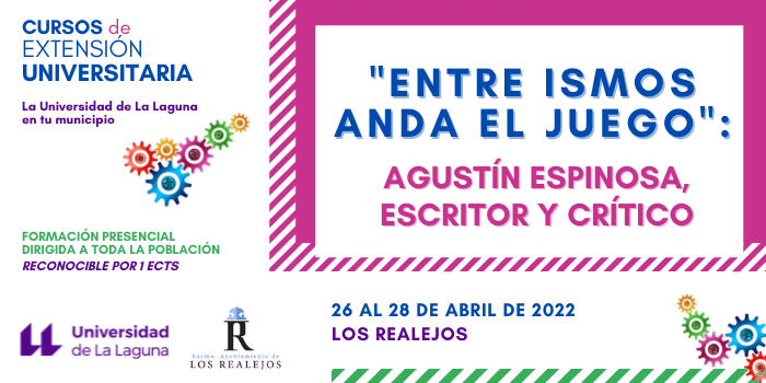 Curso de Extensión Universitaria organizado por el Vicerrectorado de Cultura, Participación Social y Campus Ofra y La Palma en colaboración con el Excmo. Ayuntamiento de Los Realejos, dentro de la programación de la convocatoria de Cursos de Extensión Universitaria en el ámbito municipal “Ayuntamientos 2022”, que se celebrará en modalidad presencial los días 26, 27 y 28 de abril de 2022.