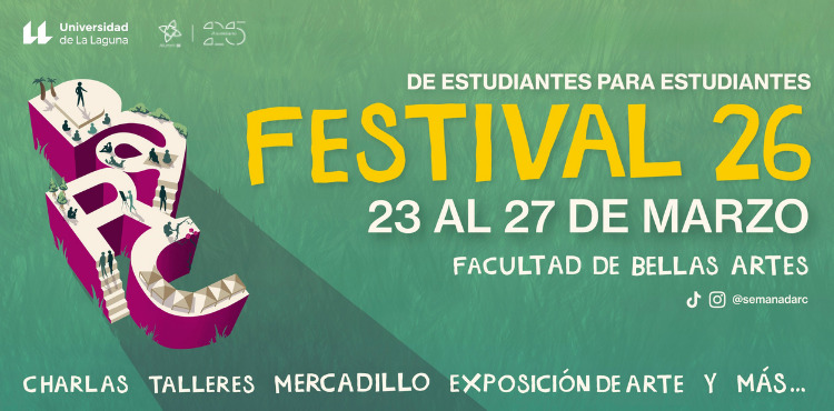 DARC 2026 es un festival cultural gestionado por estudiantes para estudiantes que se celebra en la Facultad de Bellas Artes de la Universidad de La Laguna y que reúne distintas propuestas vinculadas a la creación contemporánea. Del 23 al 27 de marzo podrá visitarse una exposición de arte en la Sala de Exposiciones, mientras que del 24 al 26 de marzo se desarrollará una programación paralela con charlas, talleres, mercadillo artístico, actividades abiertas al público y música en vivo, entre otras iniciativas. El festival busca generar un espacio de encuentro entre estudiantes, artistas y profesionales, fomentando el intercambio de ideas y la difusión de prácticas artísticas actuales.