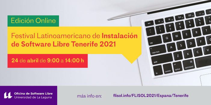 El próximo 24 de abril tendrá lugar simultaneamente en diferentes partes del mundo el Festival Latinoamericano de Instalación de Software Libre (FLISoL). FLISoL es el evento de difusión de Software Libre más grande en Latinoamérica y está dirigido a todo tipo de público. Tenerife será una de las sedes del mismo (#FLISoLTenerife2021), como ya lo fue en 2019. Colabora en la organización la Oficina de Software Libre de la Universidad de La Laguna y se realiza en línea debido a las restricciones impuestas por la pandema. La asistencia es libre y gratuita. Su principal objetivo es promover el uso del software libre, dando a conocer al público en general su filosofía, alcances, avances y desarrollo. Para ello se han organizado charlas de diversas tematicas a lo largo de toda la mañana con ponentes de relevancia en el mundo de habla hispana y referentes en el software libre. Se puede consultar toda la información del evento en la página web FLISoL Tenerife 2021. Desde la organización les invitamos a que participen en este evento.