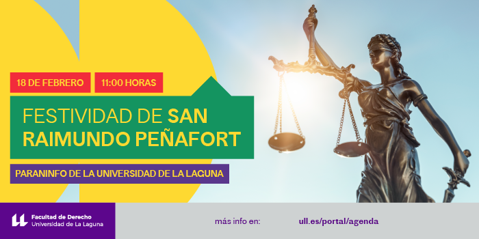 El próximo viernes 18 de febrero, a las 11:00 horas en el Paraninfo de a Universidad de La Laguna, tendrá lugar la celebración de la Festividad de San Raimundo Peñafort, Patrón de la Facultad de Derecho.