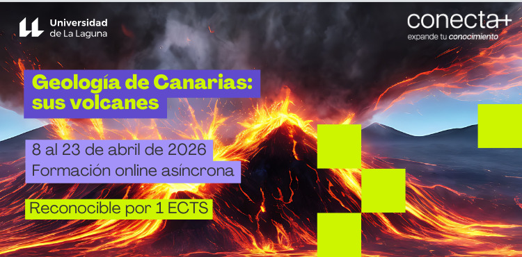 El curso «Geología de Canarias: sus volcanes» forma parte de la programación de los Cursos de Extensión Universitaria 2026 «Conecta+ Expande tu Conocimiento». El mismo se celebrará en modalidad online asíncrona entre el 8 y 23 de abril.