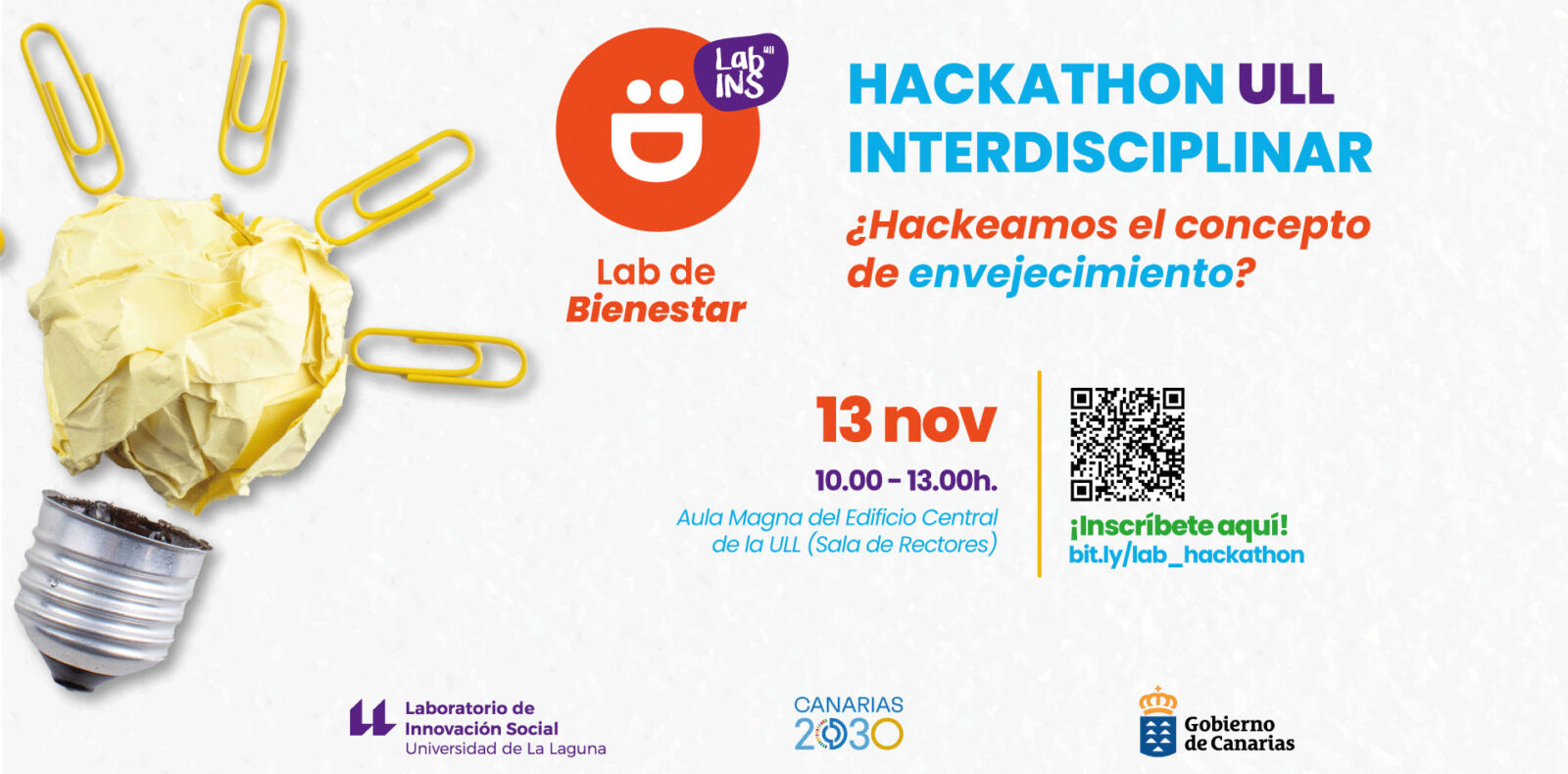 ¿Y si nos atrevemos a hackear el envejecimiento? Desde el Laboratorio de Innovación Social de la Universidad de La Laguna (LabINS ULL) te invitamos al «HACKATHON ULL Interdisciplinar: ¿Hackeamos el concepto de envejecimiento?» en el que alumnado y profesorado de distintas titulaciones de nuestra universidad reflexionarán y trabajarán juntas en grupos mixtos con el objetivo de reformular el concepto del envejecimiento.