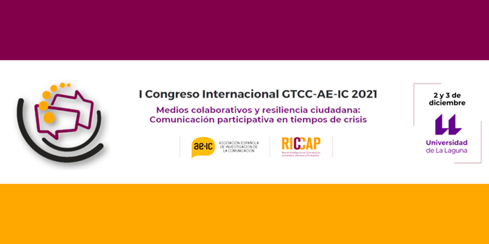 Los próximos 2 y el 3 de diciembre de 2021, la Universidad de La Laguna acoge el I Congreso Internacional GTCC-AE-IC 2021 “Medios colaborativos y resiliencia ciudadana: Comunicación participativa en tiempos de crisis”. Organizado por el Grupo de Trabajo (GT) de Comunicación y Ciudadanía de la Asociación Española de Investigación de la Comunicación (AE-IC) y la Red de Investigación en Comunicación Comunitaria, Alternativa y Participativa (RICCAP), este congreso presencial pretende convertirse en una cita bianual para profesionales, estudiantes y sector académico del ámbito de la comunicación ciudadana.